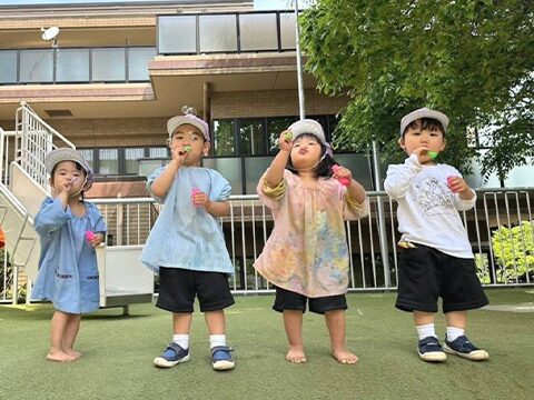 とても暑い日でしたが、保育室・未就園児すみれ組の子どもたちと、子育て広場「さくらんぼルーム」から6組の親子が参加してくれました🍒