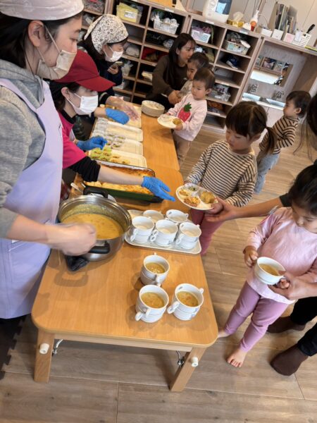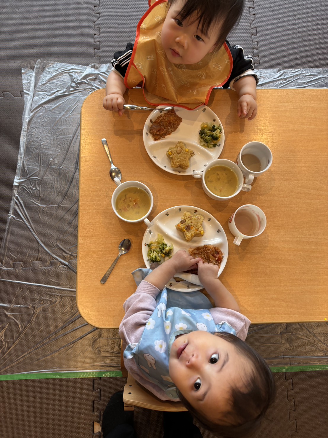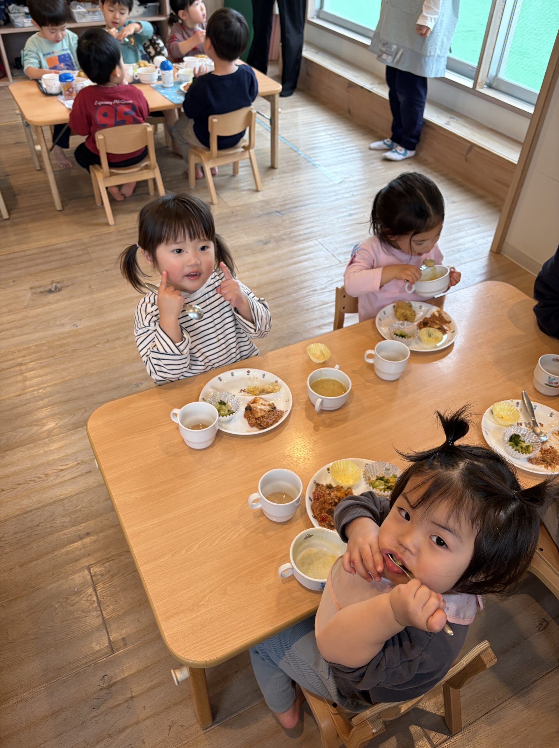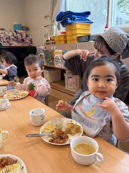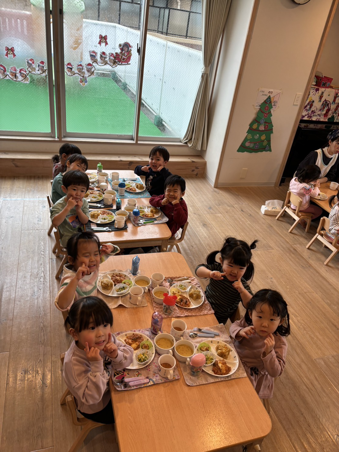 昨日はビュッフェスタイルでクリスマス給食を楽しみました。🎅子どもたちは1人ひとり自分でお皿を持ち、お星さま型のピラフなどをとり、テーブルまで運んで食べました。いつもと違う給食に「お子様ランチみた~い」と笑顔があふれ、楽しいひとときを過ごしました⭐