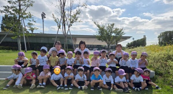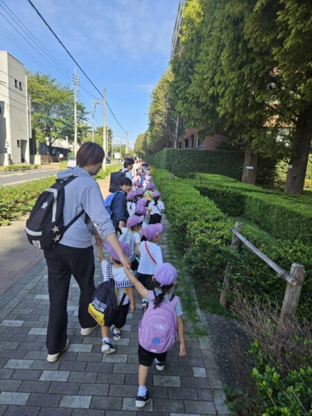 年少、年中、年長組のお兄さんお姉さんと一緒に馬事公苑へいきました。片道45分です。