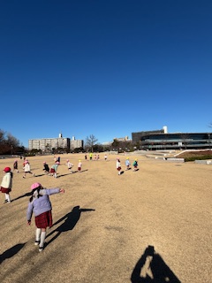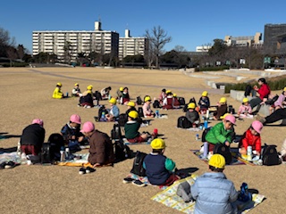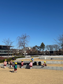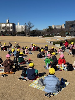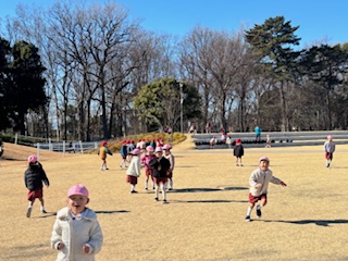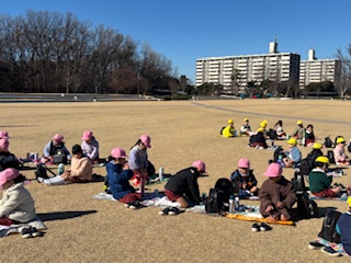 2026年1月9日(金)3学期始業式の日に年少組~年長組の3クラス合同で「馬事公苑」へ遊びに行きました!今年の干支は午年なので、みんなで年神様のお馬さんに会って、一年間の無病息災をお願いしてきましたよ。子ども達は殆ど貸し切り状態の広い原っぱで思い切り走ったり、転げまわったり…お昼には芝生の上でお弁当を食べて一日のんびりと過ごしました。3学期も素晴らしいスタートを切って、子ども達も大満足でした!!