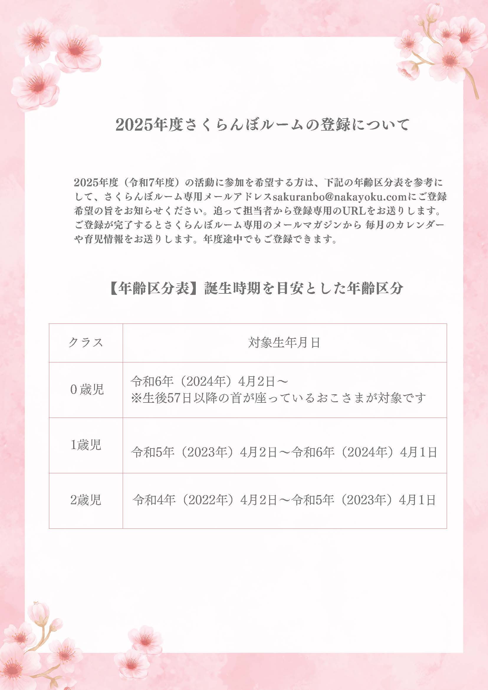 活動は対象年齢のお子さんがいれば無料で、登録も簡単。毎年更新制で連絡先とお子さんの名前・年齢を登録するだけでご利用いただけます。